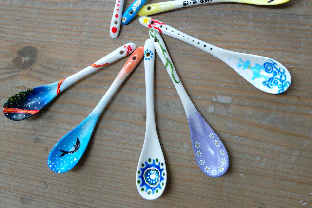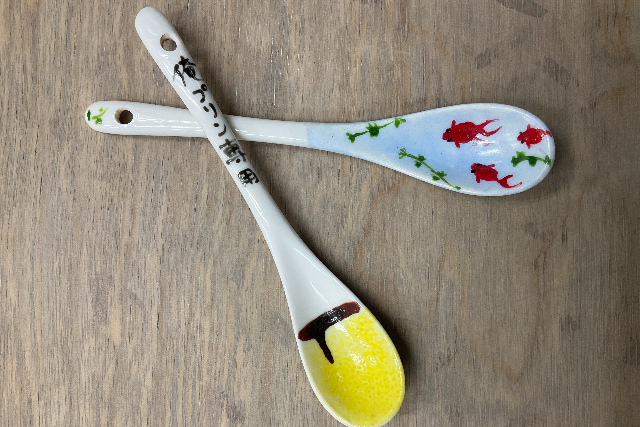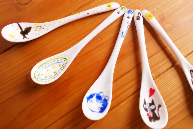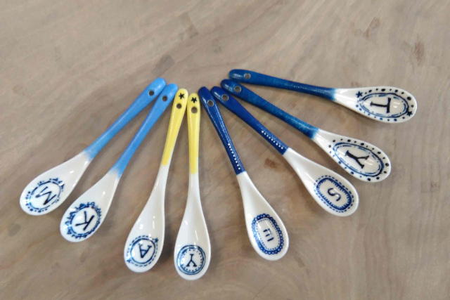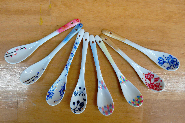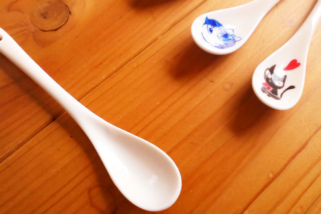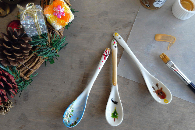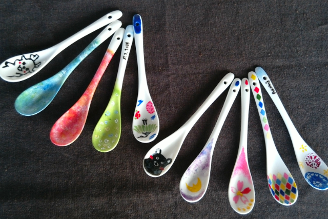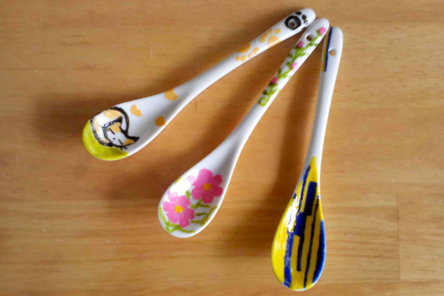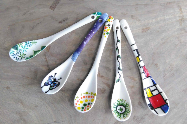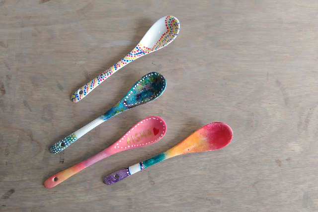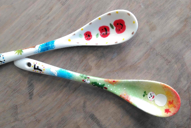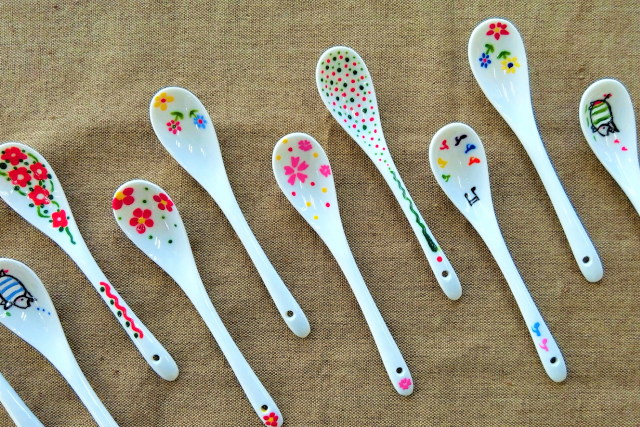 陶器製のスプーンに全6色で2本、絵付けをしていただきます。