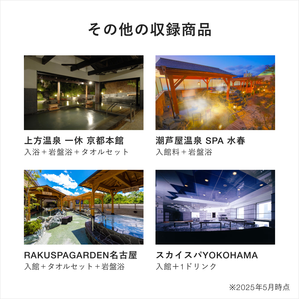 リゾート温浴施設も収録されているので、誕生日や記念日にちょっと特別な空間で癒やしひと時を過ごしていただくこともできます。