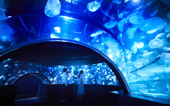また、同施設は、音・光・映像と生き物たちのコラボーレーションも見どころのひとつ。季節や昼夜で異なる雰囲気を楽しめるドルフィンパフォーマンスや、光の演出が幻想的な展示の数々は、大切な方とのデートぴったりです。