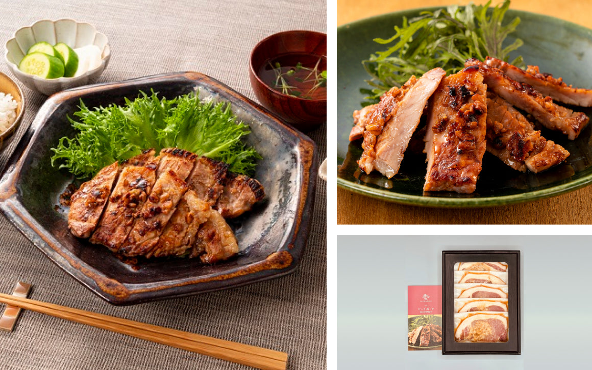 ♂デュロック×♀交配種(♂大ヨークシャー×♀ランドレース)の三元交配種で、きめが細かく非常にやわらかい肉質で、保水性が高く、赤身に適度な脂肪がありジューシーな豚肉です。