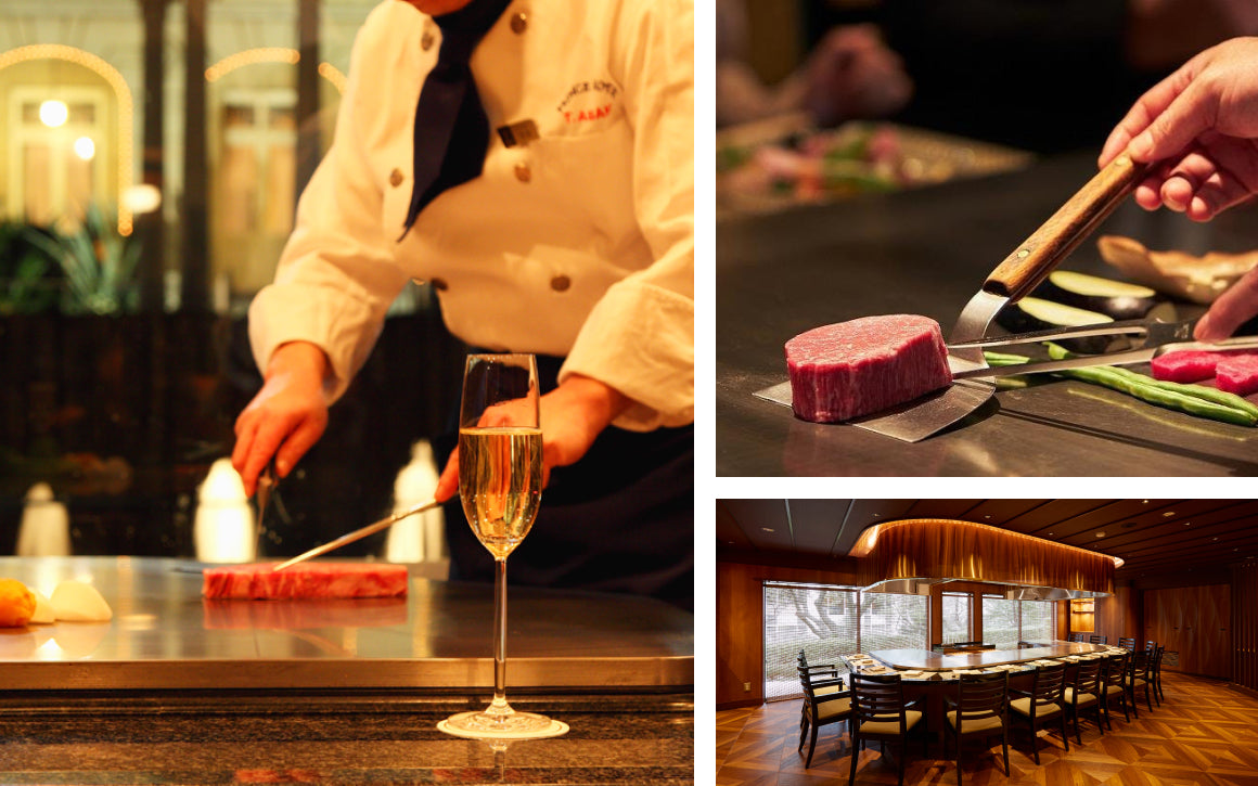 黒毛和牛や神戸ビーフなどをお客様の目の前の鉄板で調理する、臨場感あふれる演出で味覚だけでなく、視覚でもお食事をお楽しみいただけます。