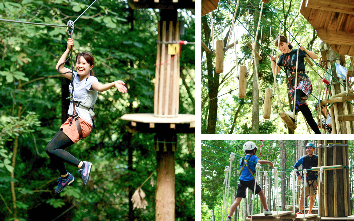 森林の中に作られた巨大なアスレチックで全23種類のアクティビティに挑戦!