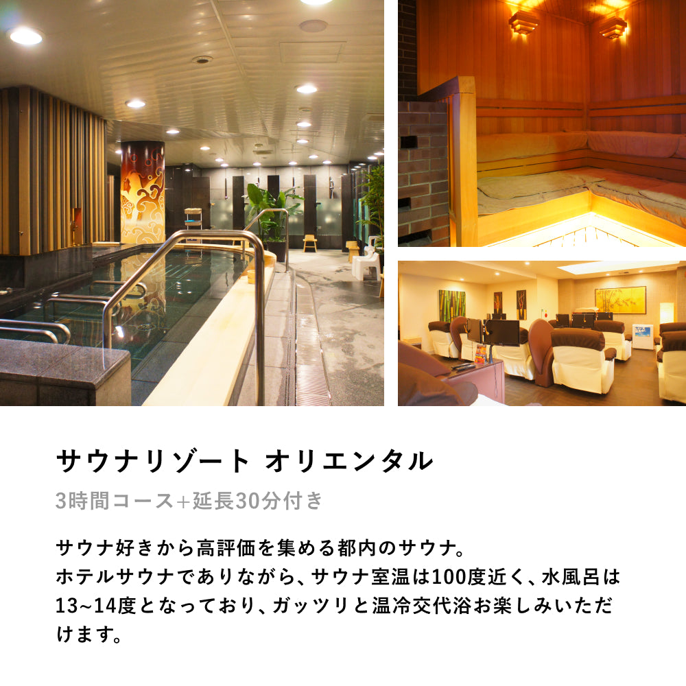 当プランでは、3時間コースにくわえて、くわえて30分の延長付き。じっくりと思う存分"ととのう”体験を。