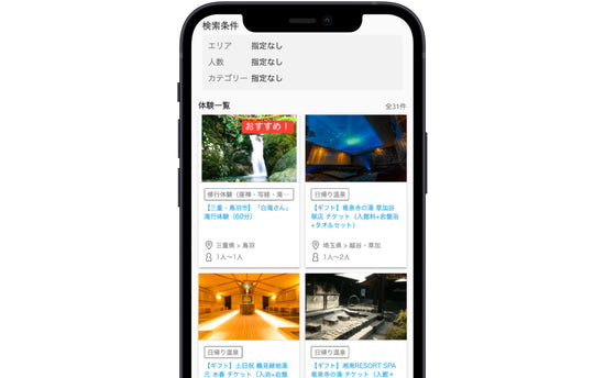 ご利用時はカタログから電子チケットに引き換えてスマホひとつで簡単入場。最短で貰ったその日にご利用いただくこともできます。