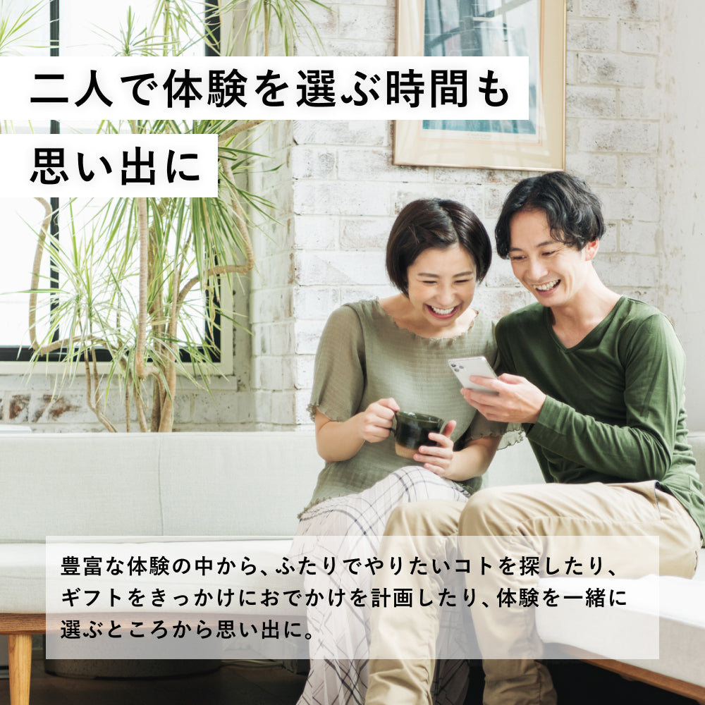 最大2名までご利用可能!体験を選ぶ時間も思い出に。おでかけの予定たてるところから2人にとっての楽しい時間は始まります。さまざまな体験の中から、どこへ行こう、何をしようと考える時間やおでかけを待ち遠しく過ごす日々も、2人にとっては思い出に。
