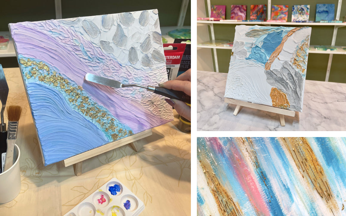 テクスチャアートとは、今SNSで大人気のアクリル絵の具と粘度のあるペーストを混ぜ込み、立体感のある質感で描く抽象画アートです。
