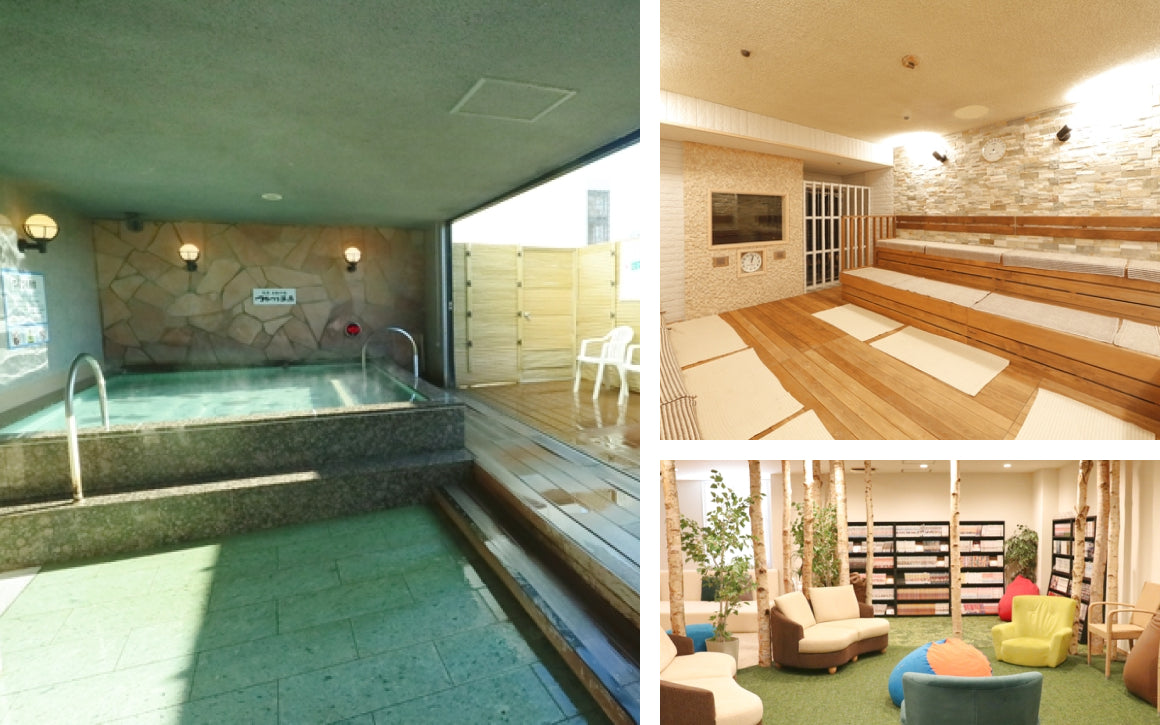 また、趣向の異なる3種類の本格サウナや、 波動数値がトルマリン石の9倍も高い「角閃石」を使用した岩盤浴も人気のポイントです。