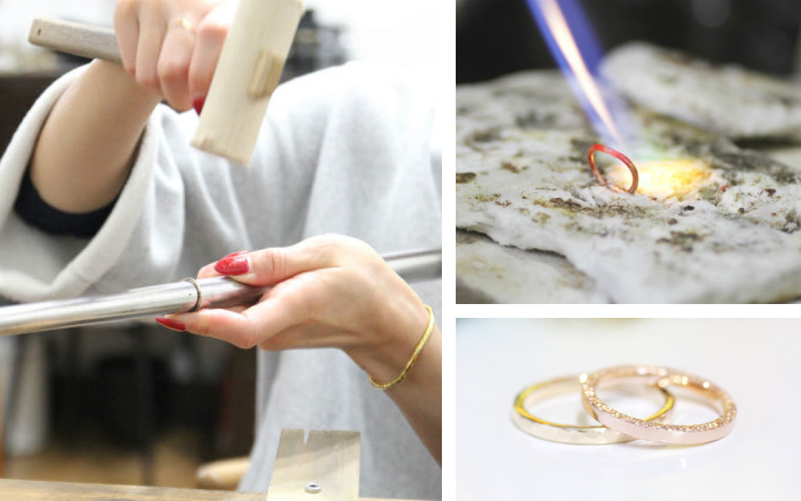 落ち着いた輝きが素敵なK10ゴールドでオリジナルリングを手作りする体験です。