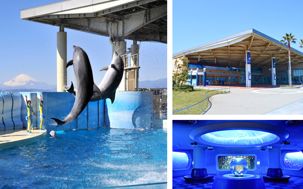 相模湾の海中を再現した迫力満点のメイン水槽をはじめ、幻想的なクラゲ水槽、イルカショーやいきものとのふれあいなど、見どころ満載。